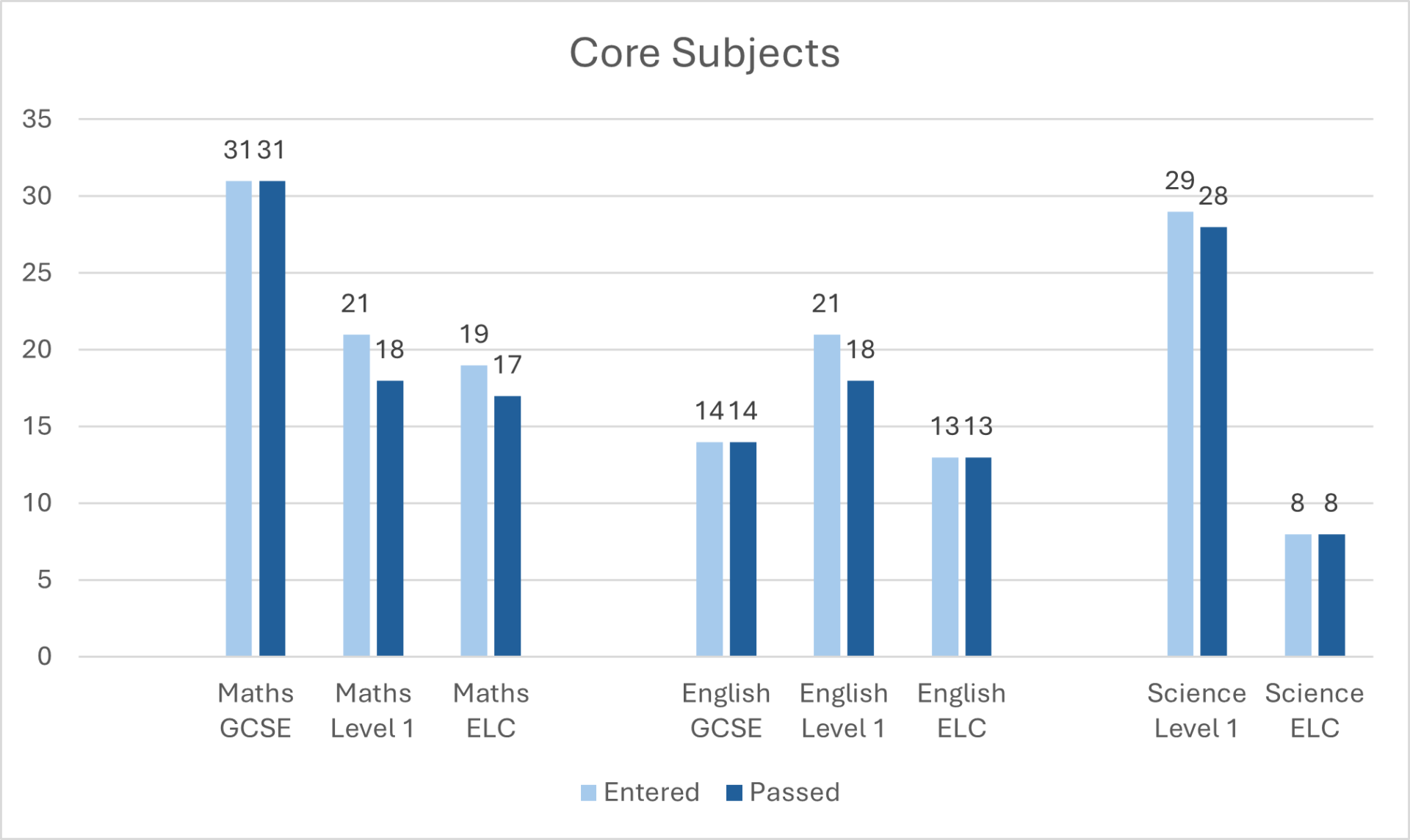All pupils in KS4 will receive lessons in ‘Core Subjects’ - English, Maths, and Science - and ‘Further Curriculum’ subjects - Life Skills, ICT, P.E, PSHE (Personal, Social, Health and Economic Education), and RSE (Relationships and Sex Education).